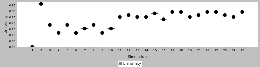 The uniformity among the positions increases as the customers spread themselves among the positions.